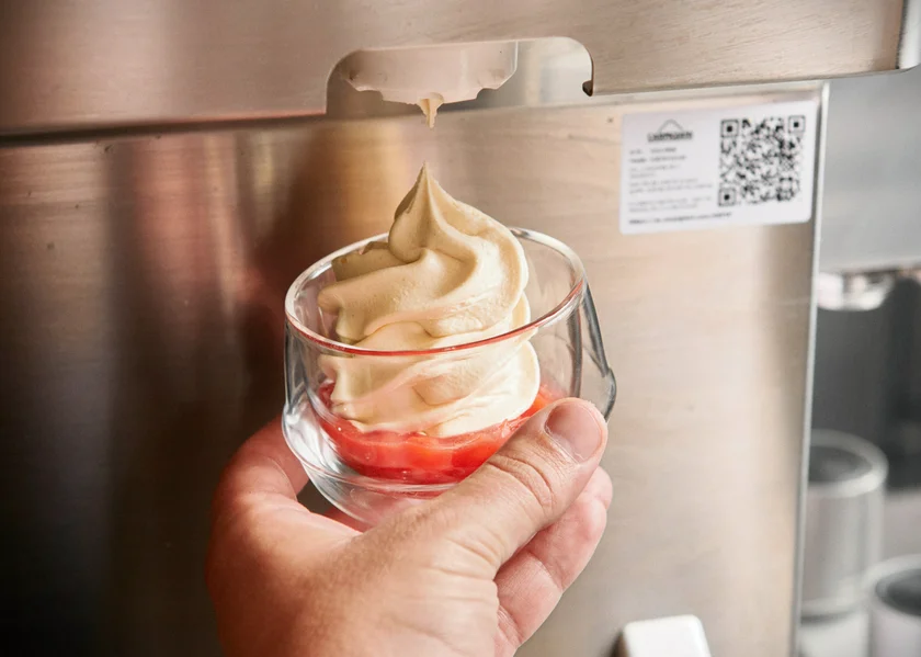 The creative culinary minds at Eska Letná have figured out how to harness the light, sweet, tangy flavors of tvarohová buchta, a beloved baked good made with Czech-style cheese curd (also known as quark), and swirl them up in a soft-serve as decadent as the original. Savor it on its own or opt for seasonal fruit compoté and crunchy topping.