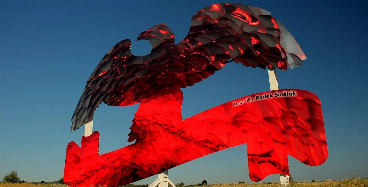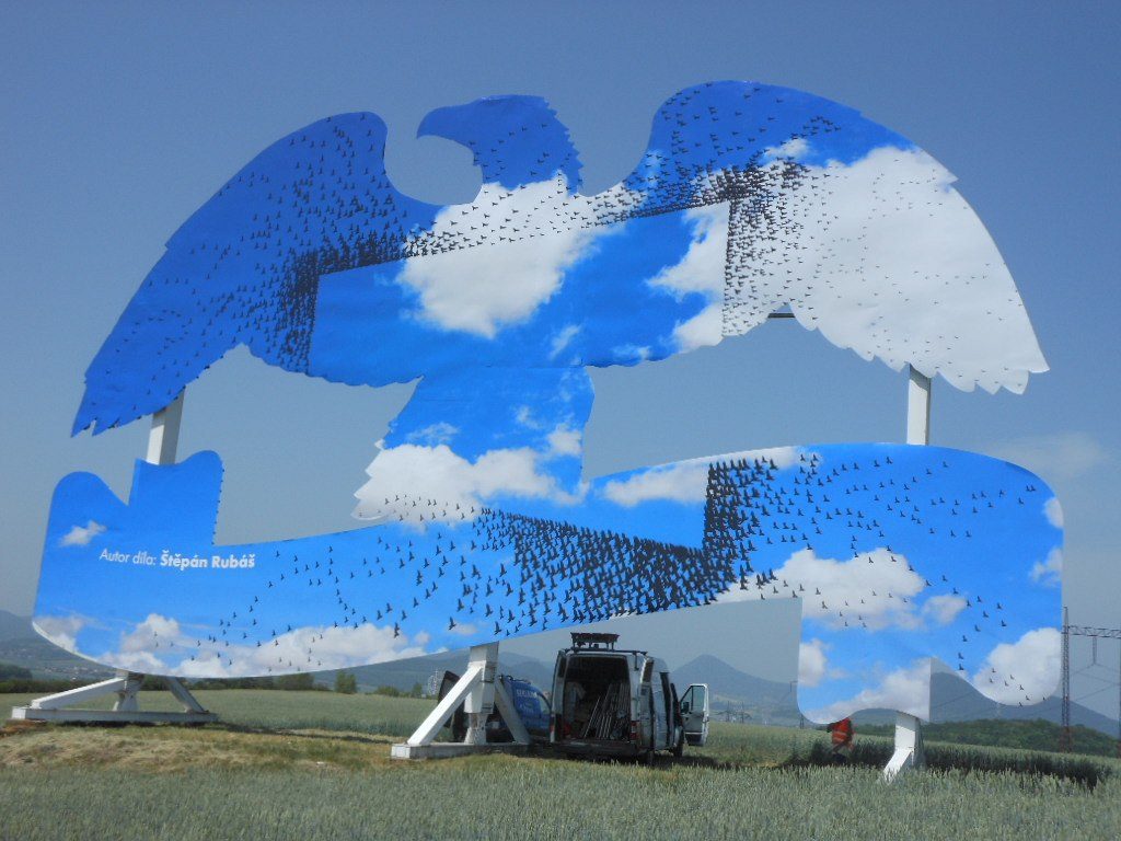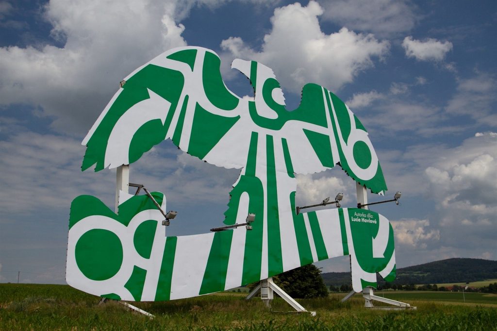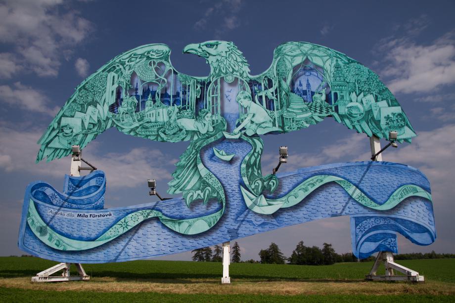 Míla Fürstová’s signs dealt with the idea of memory. “The wings of an eagle cover a dreamlike linear representation of the Czech landscape, as I wear it in my spirit, wherever I am in the world. I chose the colors so that the whole work merged with the landscape with a certain subtlety so that in some moments it merged with it, just as our memories merge with the reality we are experiencing,” Fürstová said.