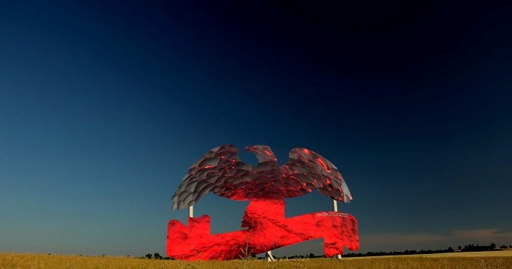 For the time being, six of KMV’s eagle signs can bee seen with artistic motifs. KMV just converted two more eagles, following on four it changed last summer. In total, KMV has 16 roadside eagles. They have not announced when the rest will be transformed.