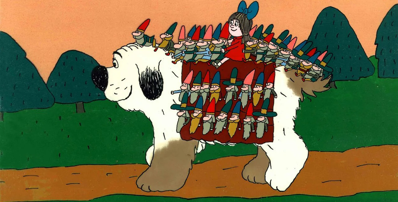 Two seasons of Maxipes Fík cartoons were made, in 1975 and ’78, totaling 26 episodes. The cartoons, drawn in a minimalist style, follow the exploits of the large talking dog Fík and a young girl named Ája. The cartoons were written by Rudolf Čechura and directed by Vaclav Bedrich.