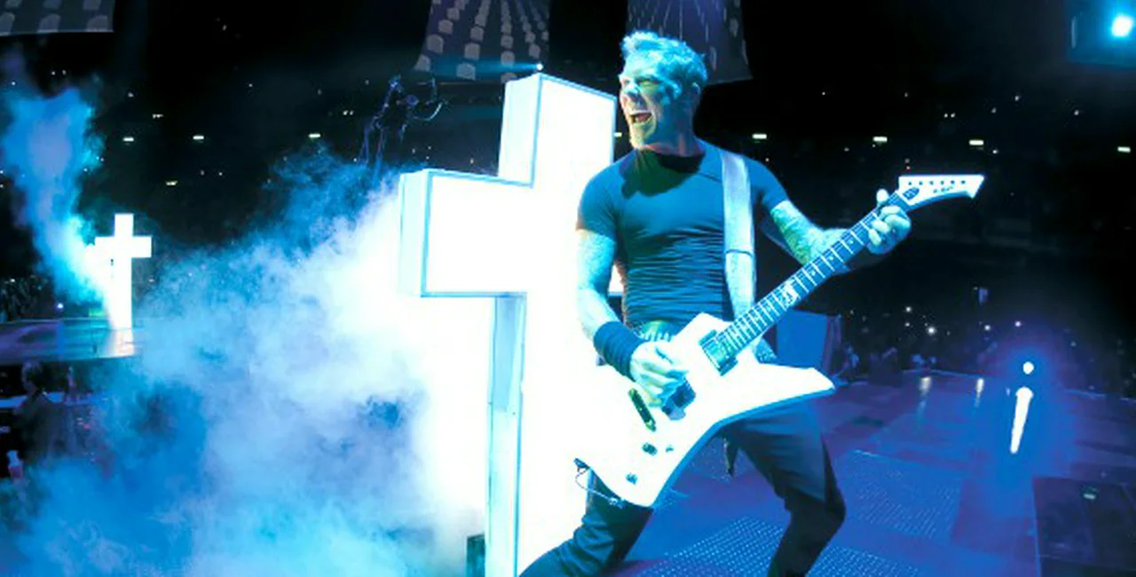 Sixteen of the band’s greatest hits unfold during the film, including classics like Master of Puppets, Enter Sandman, and Nothing Else Matters, each one set to a stage performance that makes use of props, lighting, and video. A highlight of me was the one-two punch of Ride the Lighting, during which an electric chair was lowered from above, complete with effects, followed by the solemn One, during which silhouettes of soldiers marched through video monitors throughout the venue.