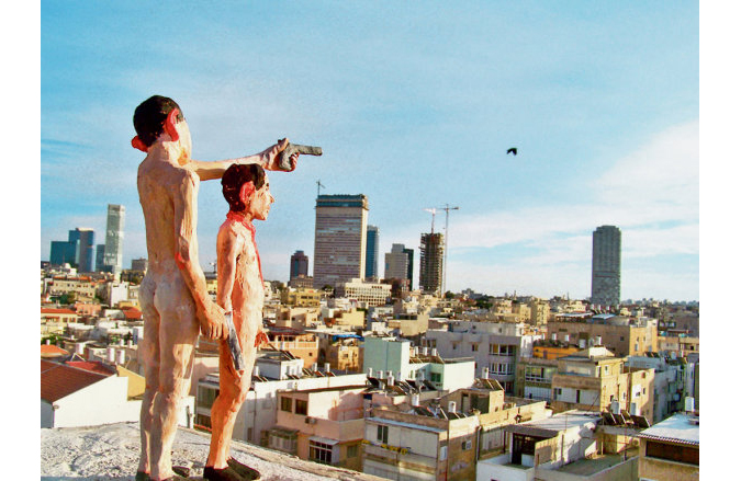 This is an eerie and moving piece. A montage shows the establishment of a new kibbutz and returnees commencing a fresh life in Poland: members learning Polish and women planting flowers outside their make-shift wooden huts. All too quickly, though, a watch tower is erected and the settlement is covered with barbed wire, grotesquely similar to a concentration camp or the modern guarded settlements in the West Bank.