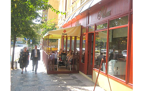I didn’t expect to see such a pretty place on this busy street. The eye-catching French café is close to the Jiřího z Poděbrad metro station, just across from The Church of the Most Sacred Heart of Our Lord.