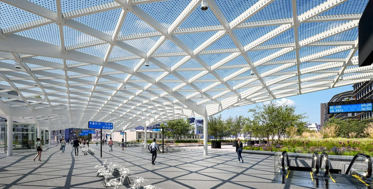Among the most striking new features will be a large pedestrian platform the size of Old Town Square above the tracks, connecting key streets while offering green space and views of the trains below.