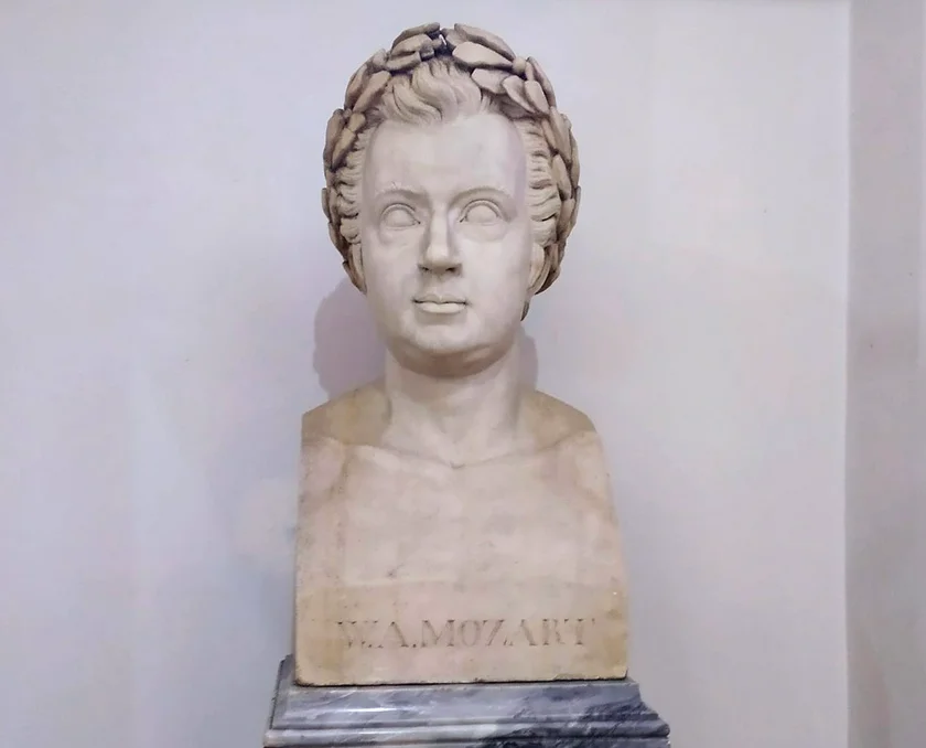 He visited the Klementinum several times during this trip and heard students play one of his works there. A marble bust of him, with imperial laurels on his head, is in the entry of the Klementinum's Mirror Chapel.