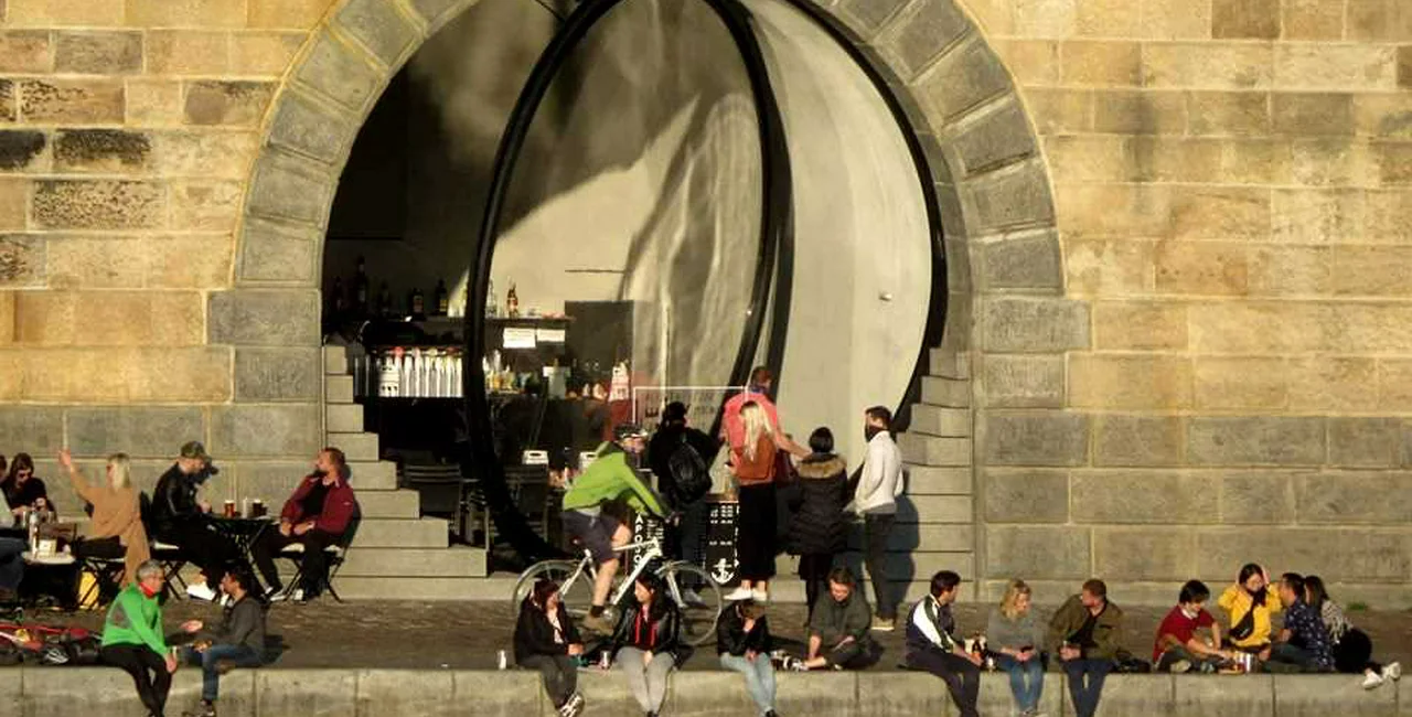 The renovation of the cubicles on Prague’s Náplavka made international news. The project by Petr Janda of the brainwork studio put large round windows into disused spaces along the kilometers of embankment wall of the east side of the Vltava river near Prague’s center. The project took a decade to implement, and further refinements in outdoor furniture are still planned.