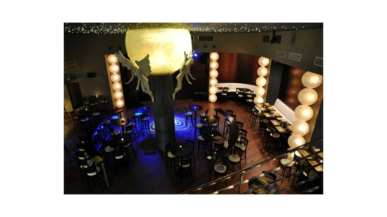 The Václavské Náměstí Nebe is the youngest of the trio. The bustling cocktail bar, located on the edge of the Fenix Palace entrance, has become a popular meeting place both for those visiting the city and those living here. Despite advertising free entry, Nebe security insist that all attendees surrender their jackets to the cloakroom at the cost of 20 CZK per item. After a quick payment and ticket exchange by the efficient cloakroom attendant, I made my way into the large two-tiered, chrome-framed bar. The roomy lower level area offered lots of seating, which generally seemed to be taken by groups chatting and enjoying the relaxed atmosphere. You’ll usually find the bar busy with lots of people, but the clever layout means the punters can move around the room with relative ease. An angelic centre-piece adds to the room’s ballroom feel, providing adequate lighting and a nice focal point in the room.