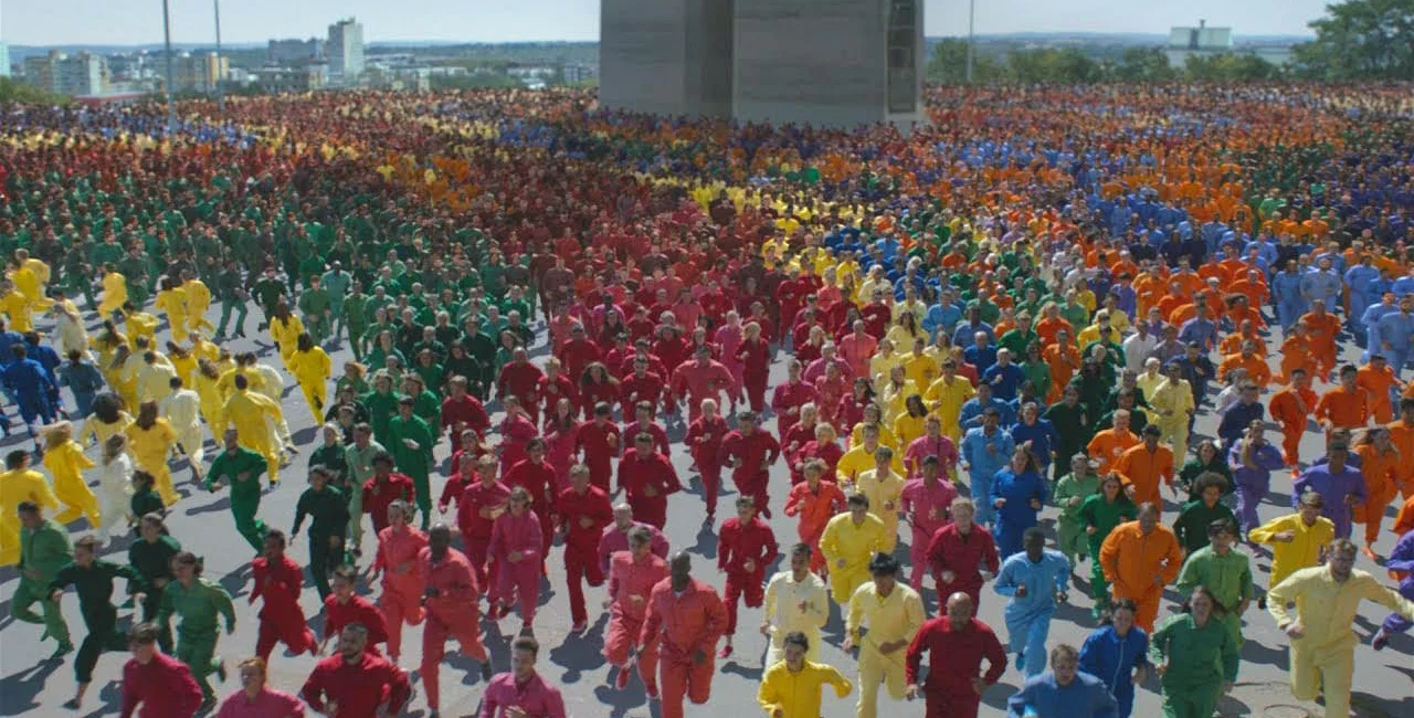Despite its cheery color motif, the seemingly post-apocalyptic spot recalls the totalitarian themes of the company’s “1984” ad introducing its Macintosh personal computer; those who know their Czech history will also find Strahov Stadium, which hosted the mass synchronized Spartakiada gymnastics performances of the communist era, to be an interesting location choice.