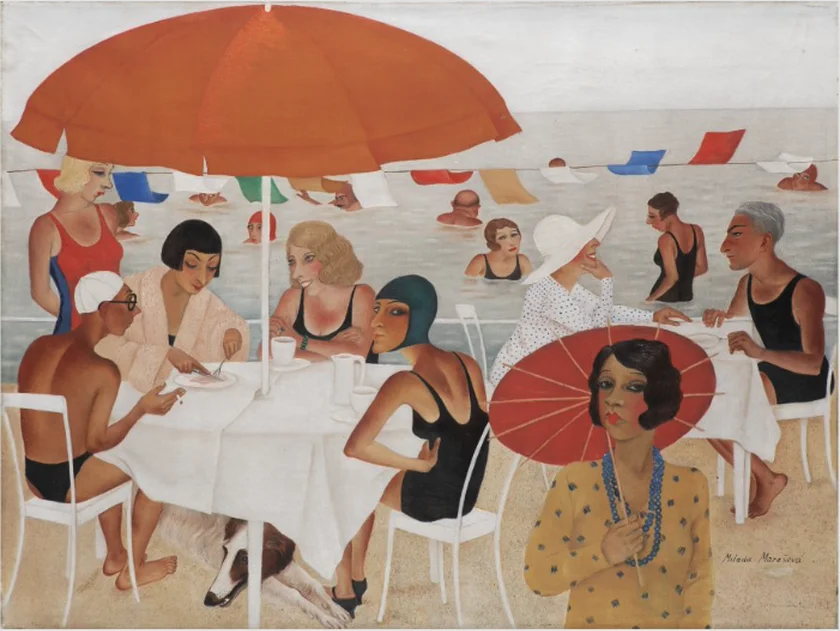 The works in New Realisms, featuring well-known artists such as Karel Čapek, Josef Sudek, and Otto Gutfreund, as well as works by lesser-known painters such as Ilona Singer, depict both the joys and the downsides of life in the city and countryside. The exhibit also showcases the prescient topics of women’s emancipation, ethnic minorities, fashion, and technology via paintings, sculptures, photographs, films, and advertising.