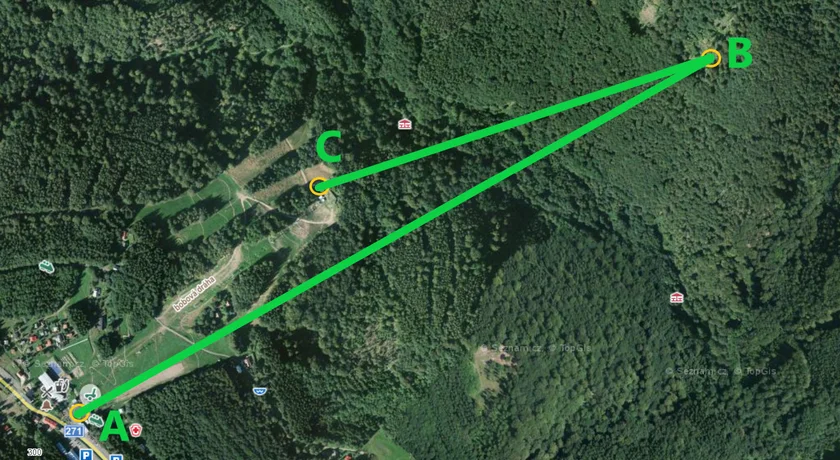 Two routes are possible, one longer and one shorter. The longer route is the fifth longest zipwire ride in Europe and the 20th longest in the world. The shorter route, covering 800 meters, is still the longer than any other zipwire in the Czech Republic. Riders zoom over the Šumenský valley and surrounding mountains at an altitude of around 150 meters.