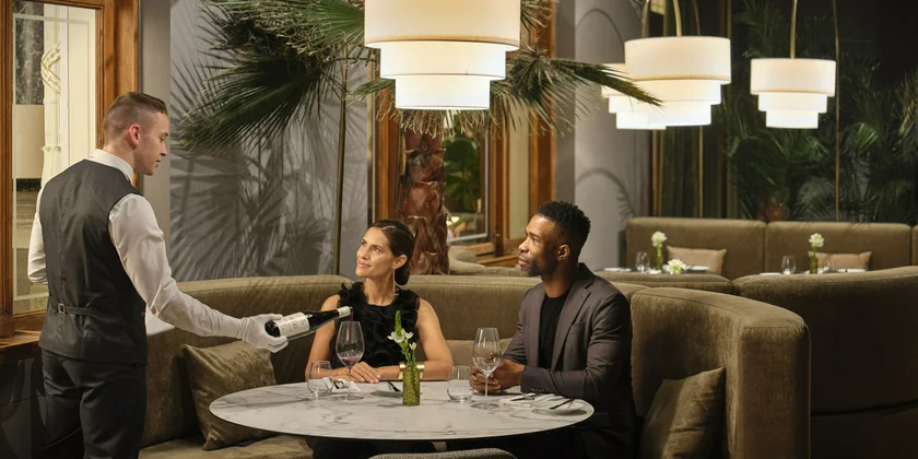 The à la carte menu is refreshed every season. This winter, guests can enjoy grilled zander with beetroot and raspberry sauce, pumpkin casarecce with pumpkin seed chips and smoked cream, aged beef sirloin with Périgourdine sauce, confit Jerusalem artichoke, Brussels sprouts, and blackberry gel.
