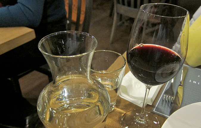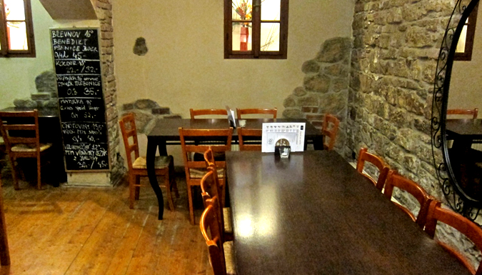 A friend joined me on my last visit. She had a French Cabernet (65 CZK/.1 liter), and said it was heavy and pretty good.