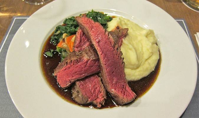 The spinach, carrots, and onions on the side were fresh and on the salty side. They balanced the beef out when combined on a fork. The mashed potatoes were good and creamy and I liked the gravy, which reminded me of a demi-glace.