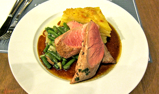 The meat was silky, tender, and tasty and sat on a good gravy made with the pan drippings. The green beans were fine, but the scalloped potatoes were dry and lackluster.