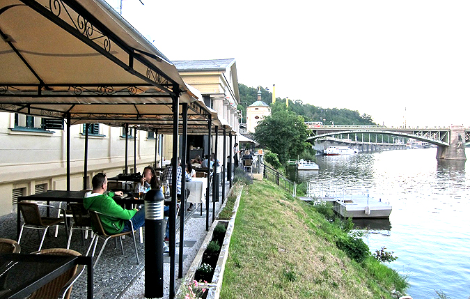 Outside, there are plenty of metal tables along the banks of the Vltava. Some had table cloths, which lent a more upscale feeling.