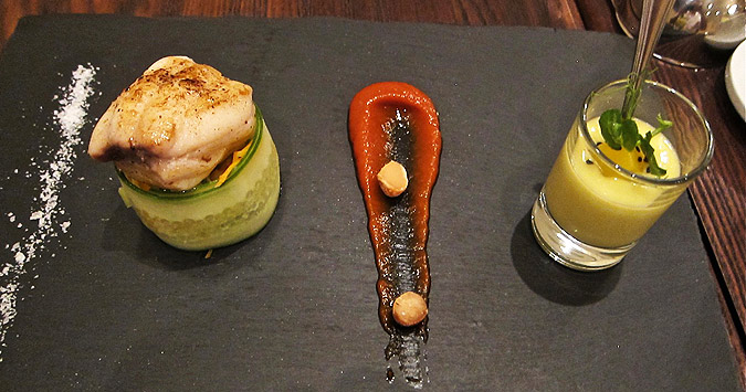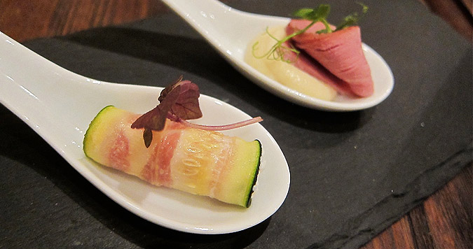 I had a lightly cooked zucchini slice rolled up with bacon cream, which was salty but a decent way to wake up the taste buds.