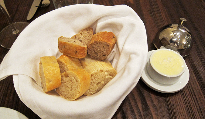 Our waiter brought a bread basket with softened, salted butter.
