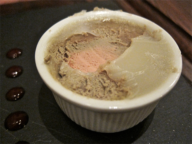 Underneath the cool layer of white fat, there was smooth, rich, fatty duck liver pâté.
