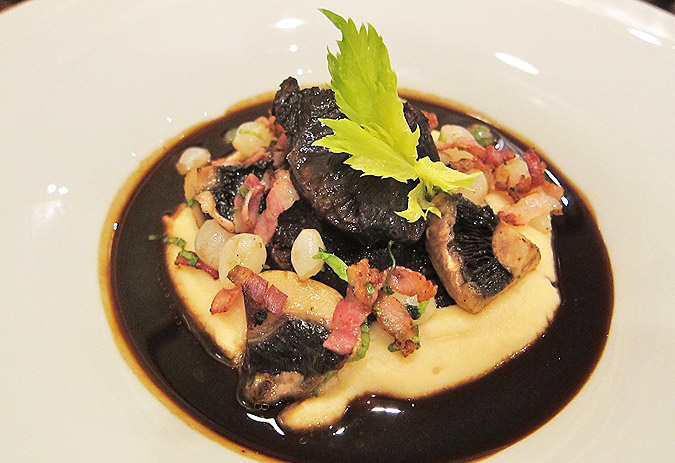Adam had a slice of duck breast filled with apple and horseradish puree. He said the duck was somewhat dry, but he still liked it.