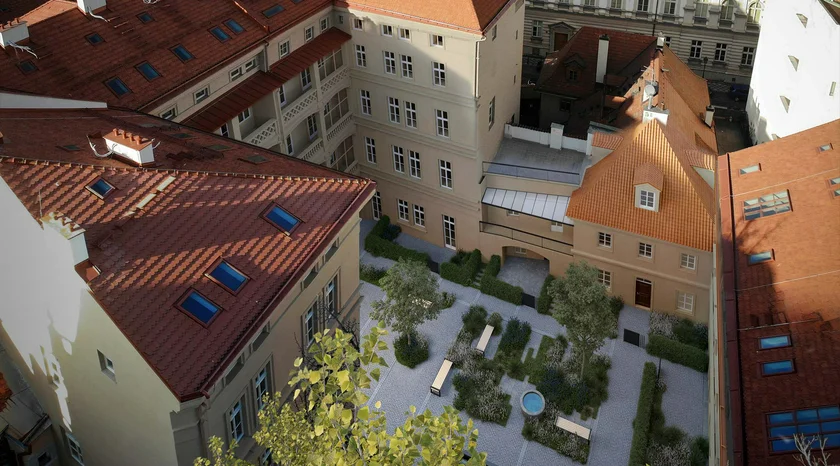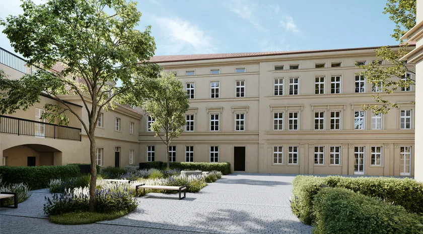 Residence Karolíny Světlé was originally designed by Johann Schücker, a local architect known for his work on Late Classicist townhouses in the Czech capital. The buildings, which are connected by an inner courtyard, stand on centuries of history, including one that sits on the site of a 15th-century house.
