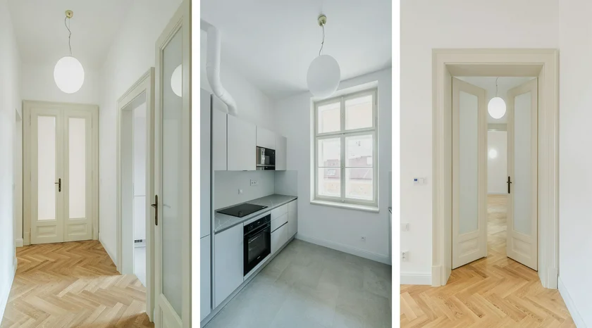 Each flat has its own distinct character, with some offering balconies, private front gardens, and sweeping views of Petřín Hill and Prague Castle.