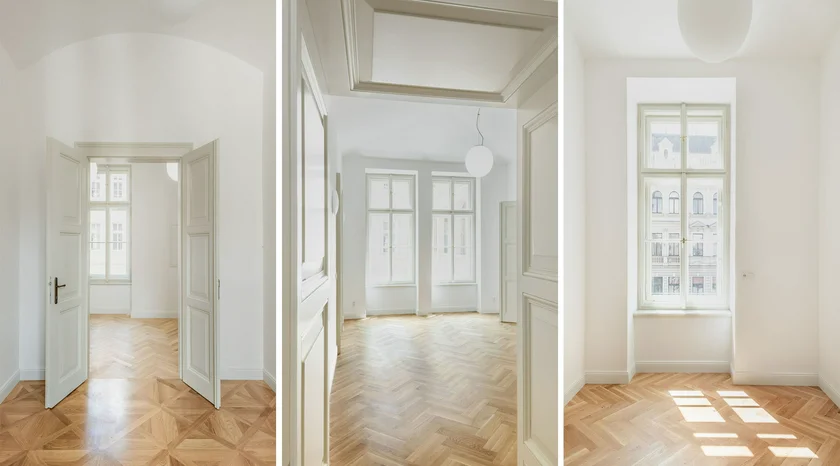 Set within two carefully restored 19th-century buildings (both cultural monuments), the residence blends timeless architecture with modern comforts. High ceilings, elegant Neo-Renaissance facades with floral stucco ornaments, smart layouts and contemporary finishes define the 37 high-end rental units, which range from compact studios to spacious 6+1 duplexes.