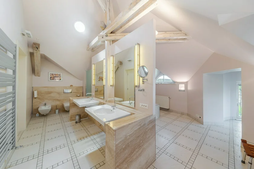 Dobřichovice is one of the most sought-after towns near the Czech capital. Just 20 minutes from the center of Prague, the villa’s prime location adds to its appeal. The train station is a three-minute walk away and offers a 25-minute connection to Smíchov.