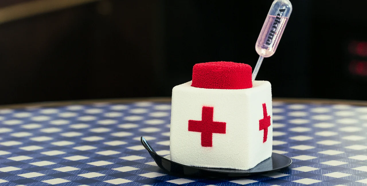 While the base of the dessert can be enjoyed by all ages, it's topped off with a vaccine capsule that contains a splash of strawberry gin for adults.