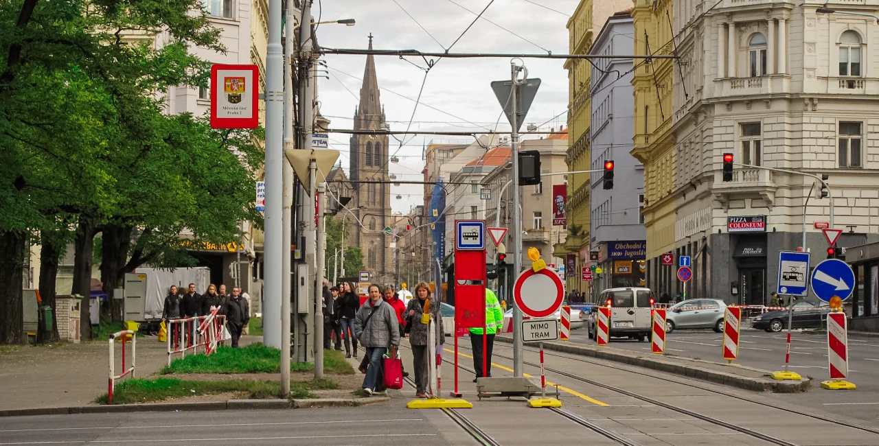 The repairs will affect tram lines 6, 10, 16, 22, 23, 24, 91, 96, 97, and 99, which will run along the changed routes. On both weekends, vehicle traffic will also be restricted. Part of Sokolská Street will be closed this weekend, and part of Legerova Street will be closed next weekend.