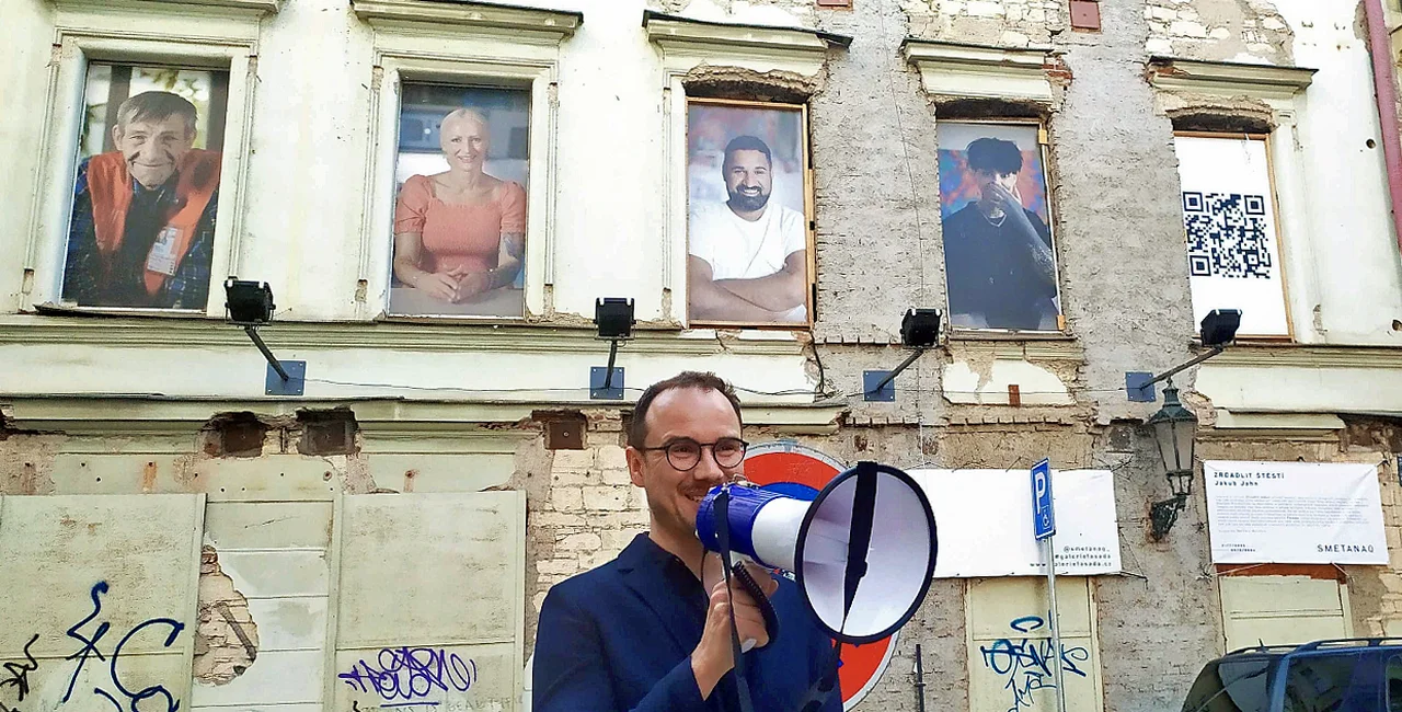 One of his long-term projects is Czech Gratitude, an endeavor to create the world’s largest collection of letters that express thanks. Images of the letters are used to make posters, pamphlets, and stencils seen and distributed across Czechia. The results are documented via photos and videos. Anyone in the country can participate by sending in a letter that expresses thanks for at least three things.