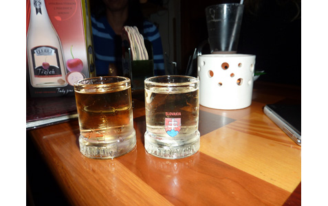 The unfriendly ‘don´t-break-my-toilet´ expression gradually changed and he proudly had a lot to say about the place. As a Slovak himself (who spoke some English), he gave credit to the good collection of specialty spirits they served, distilled from various fruit (plum, pear, raspberry, blueberry, etc.) from both Slovakia and Czech Republic. The ‘Tatratea 52%´ slivovice (plum brandy) was the best I´ve ever tried, and had a lingering buttery flavor – which masked the piercing sting that only slivo can give you.