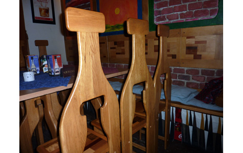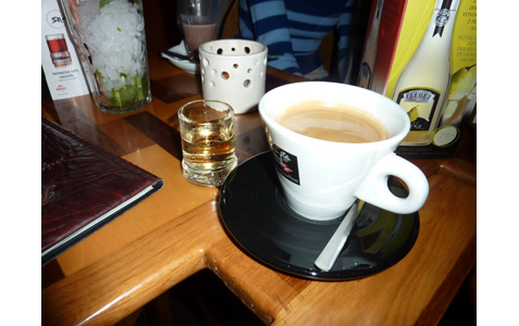 Last Thursday night, the expats.cz team ventured into Old Town for some pre-dinner drinks and found Café Bar Palírna, a small, cozy pub off of Dlouhá Street. Designed by Igor Ševčik, this distillery-themed bar has a customized, artistic quality. Everywhere were playful reminders of alcohol – such as brass-sculpted bottles; wall paintings of stills surrounded by intricate wooden wall-hangings; and hand-crafted tables and chairs shaped like bottles. All was very nice, however, lacked the actual comfort we were seeking as, despite the cushions, the furniture was hard and angular.