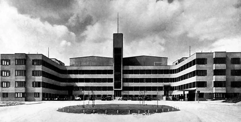 Construction began on Nov. 23, 1931, based on designs by Max Urban, who was not only an architect but also a filmmaker. The interiors and soundstages were planned with the help of actor and set designer Vilém Rittershain. The result was the most advanced studio in Europe at the time.