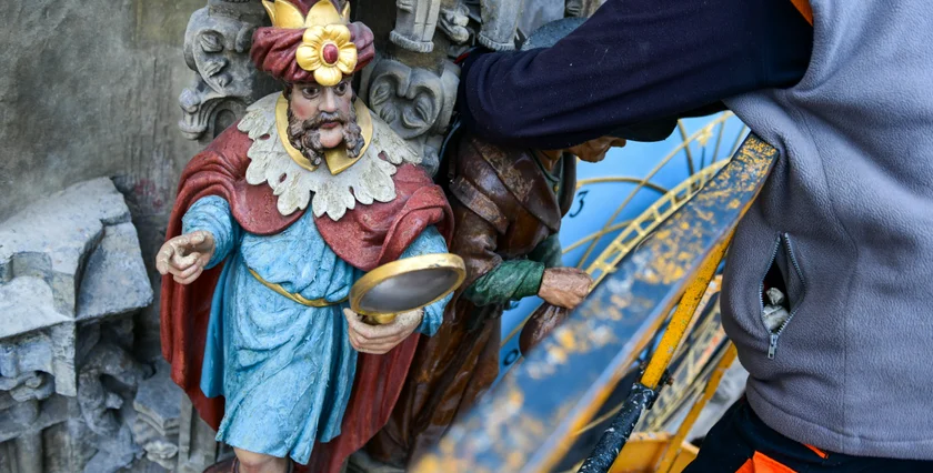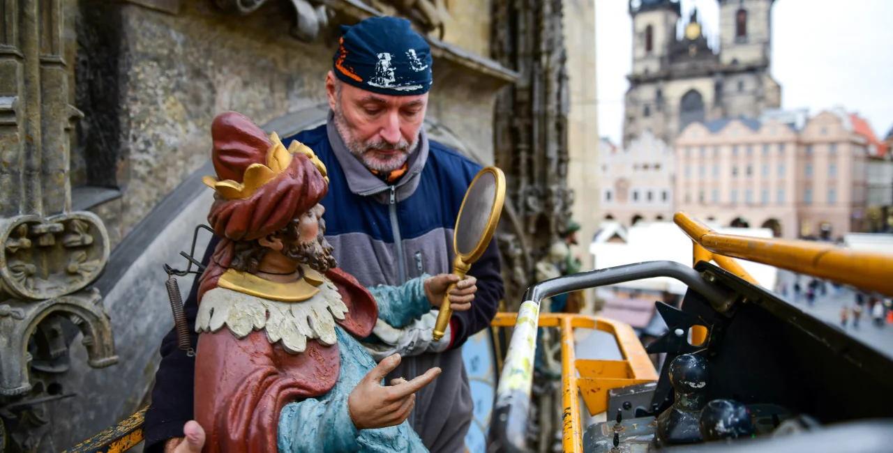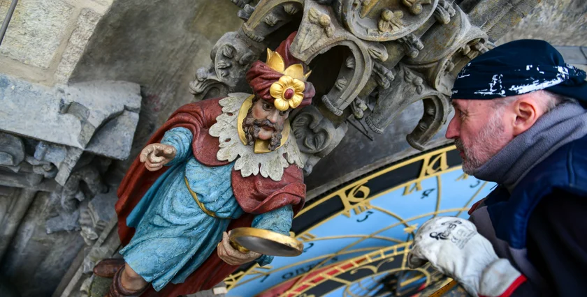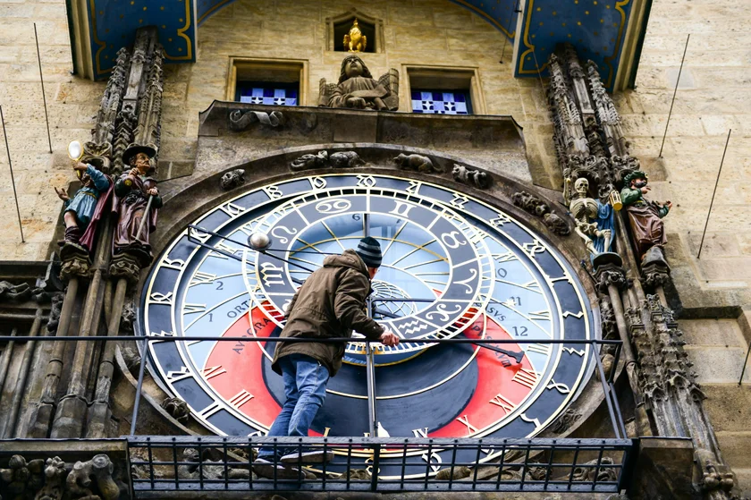 Anyone who's stopped by Prague’s Old Town Square recently and seen its Astronomical Clock may have noticed something missing. While the saints that appear in the windows for the hourly show are still there, four others that decorate the top corners of the face of the clock have gone missing. They will be absent for about two months.