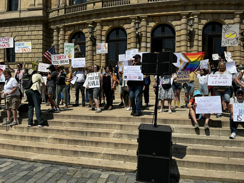 “Trump has repeatedly declared the media the enemies of the people,” said one speaker, calling attacks on press freedom a direct threat to democracy. Another added, “Peaceful protest is not a threat, but the voice of the people and a sign of democracy. It is our right and duty to ask questions and not be silenced.”
