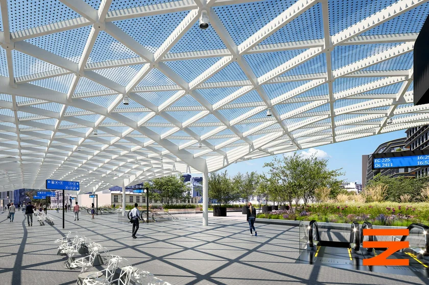 There will also be a new vestibule for waiting passengers with escalators, stairs, and elevators leading directly to the individual platforms. Part of the walkway will be planted with greenery to create an oasis in the center of the metropolis.