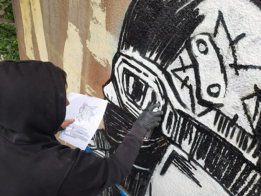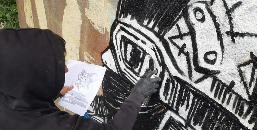 The street artist Toy Box, whose design with an artistic rendering of the motif of Perak impressed the jury the most, is now finishing the mural in Žižkov. Scenes from the life of the mythical hero from the times of the Protectorate, who was associated with Žižkov, will be displayed on the pillars of the pedestrian bridge over Husitská Street.