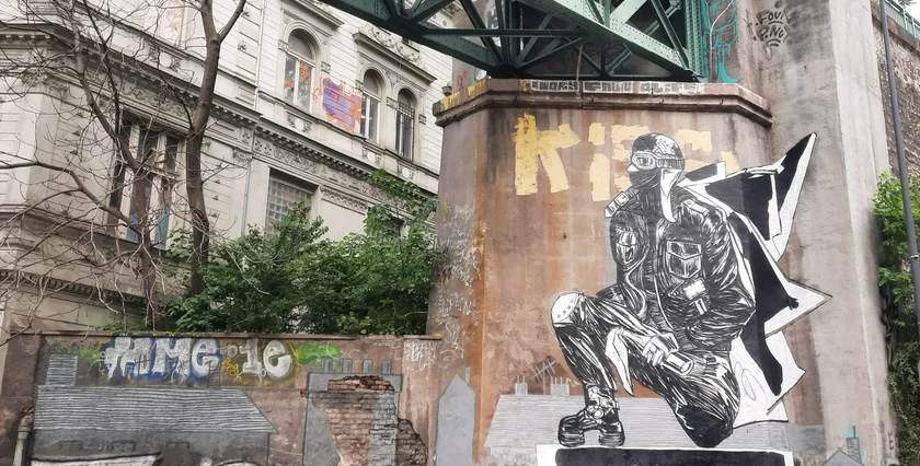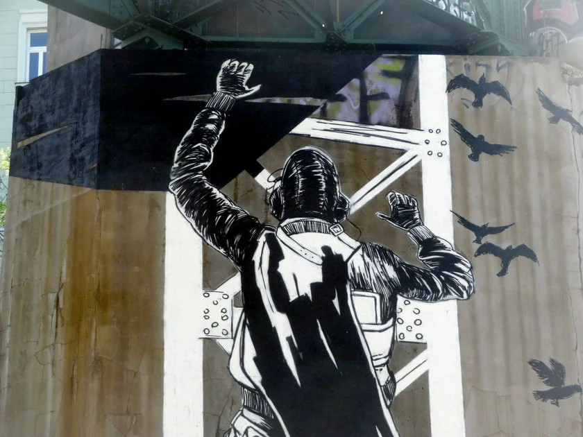 The mural of Tron (Michal Škapa) and Domino (Ondřej Klíma) can be found at Thomayer Hospital. The artists' style is derivative from their graffiti work in the 90s. Their work often features urban motifs and fragments of fast-flowing life in big cities.