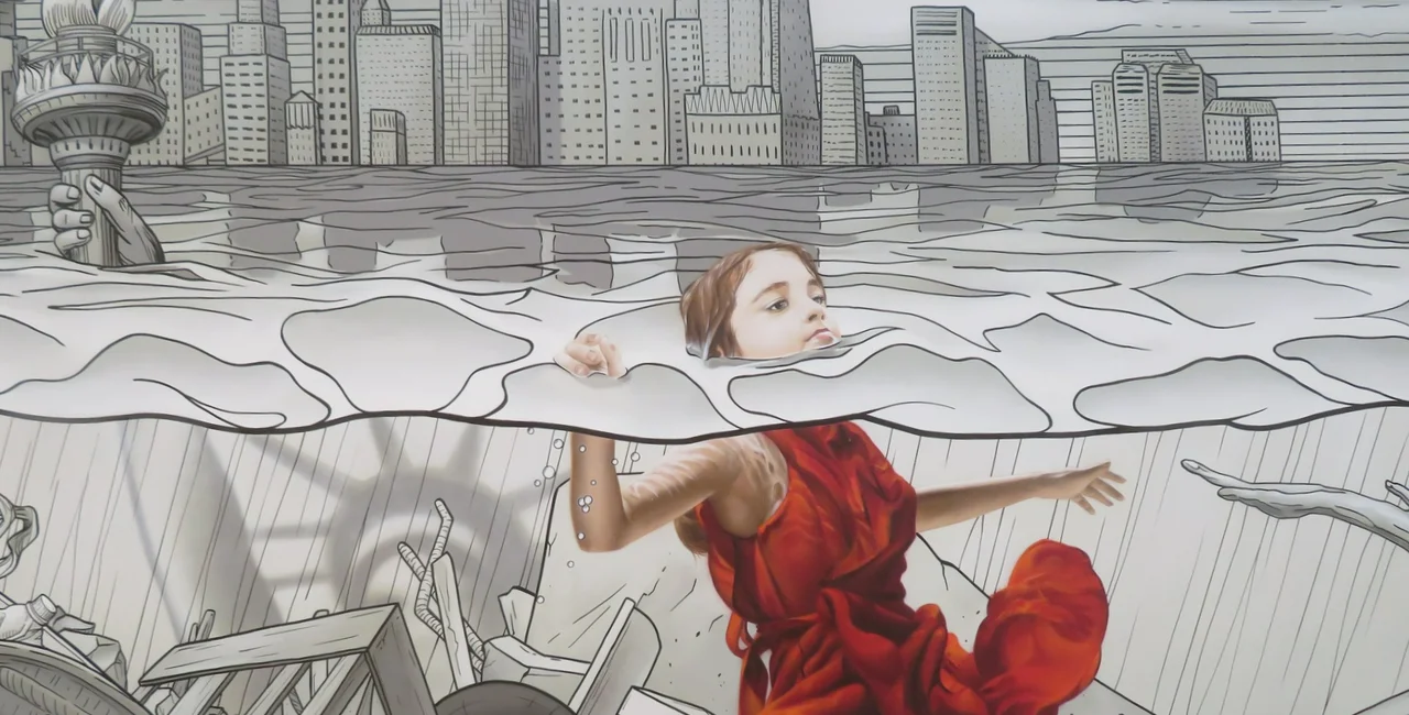 Another new work called “After Us, the Deluge” recently made its debut in the Myselbek Shopping Gallery in Prague and will be there until the end of September. The image of a woman trying to stay afloat by balancing tells us that the world has to be preserved for generations to come.