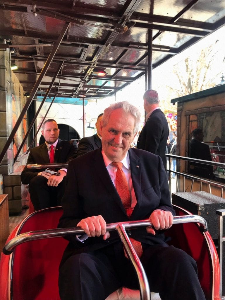 No April Fool’s joke: Czech President Miloš Zeman yesterday stopped by the popular Matějská pouť funfair at the Výstaviště Praha Exhibition Grounds, held annually every spring.
