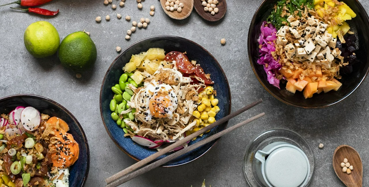 If you’re not already familiar with a poké bowl, then you are in for a treat. It is a food phenomenon that originated in Hawaii, when the sushi culture of Japanese fishermen met the abundant produce of the islands. The resulting cuisine merged cubed raw fish on a base of rice, topped with an array of fresh vegetables and sauces. The name refers to the method of preparation; the word poké (pronounced POH-keh) means “to slice” or “to cut into pieces” in the native Hawaiian language.