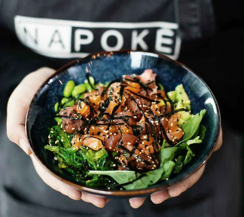 When asked about the name NAPOKÉ, Holler explains that it's a play on the Czech phrase Jdeme na pivo (we’ll go for a beer). The phrase jdeme na poké reflects his desire for Napoké to be the go-to choice when someone thinks of a poké bowl.