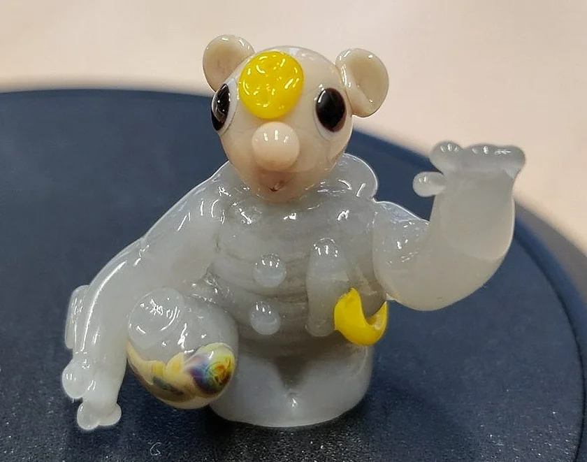 The glass figure made by the Košler glass workshop had to undergo stress tests up to 16G to make sure it could hold up to the launch.