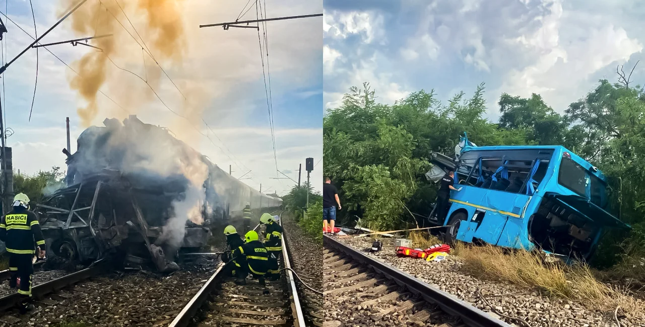 Seven people have been killed and several more were injured when an express train from Prague to Budapest collided with a bus in southern Slovakia late Thursday afternoon. The accident occurred at a level crossing near the town of Nové Zámky – no passengers on the train were injured. The cause of the collision, in which the bus was torn in two, is currently under investigation. The locomotive of the train belonged to national railway carrier Czech Railways.