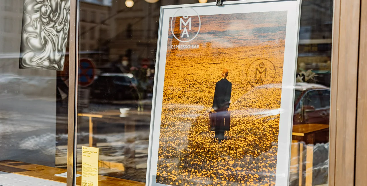 "Therefore, we used the empty windows of Prague cafes, which are now forced to operate in limited fashion, and turned them into exhibition space."