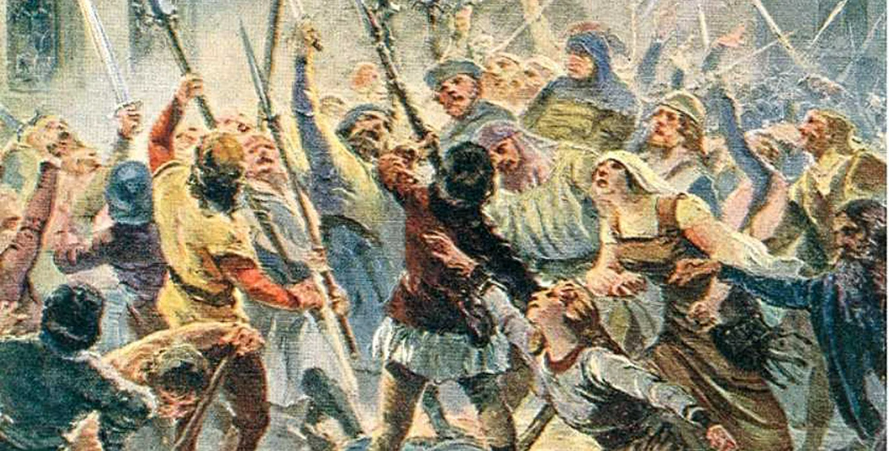 A stone was thrown at Želivský from the window of the town hall. The Hussite mob stormed the town hall and threw a judge, the burgomaster, and several members of the town council out of windows. They all fell to their deaths. One-eyed Hussite leader Jan Žižka is also said to have been present.