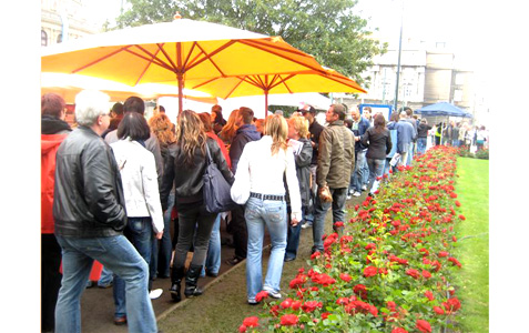 It seemed there was less space than the previous year. I also wrote about the 2008 festival on what is known to many as Žofín Island, close to the National Theater. I don’t know how the attendance compares — I was there during Sunday lunch both times — but the pathways were certainly wider.