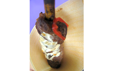 I ordered one of their peppered beef satay skewers (50 CZK). It was served in a little paper cone.