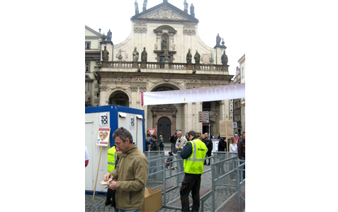 There was lots of wine and champagne available. But I had beer. I stood on the long line and had a .3 liter glass of Pilsner Urquell (25 CZK).