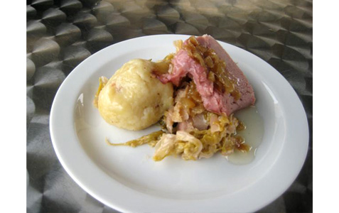 For four Grands (100 CZK), I had the warm ham off the bone with Savoy cabbage and a potato dumpling. It was OK, but given the restaurant’s reputation, I was not impressed.